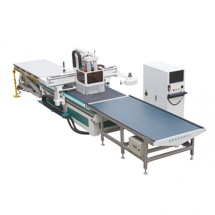 功能完善,自动上料,打垂直孔,划槽,开料,自动下料一步完成。