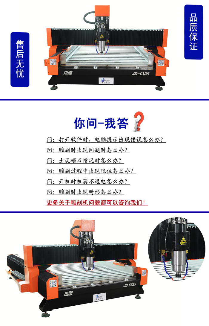 大功率水冷主轴电机噪音小,转速快,切割力度大,效率高。
